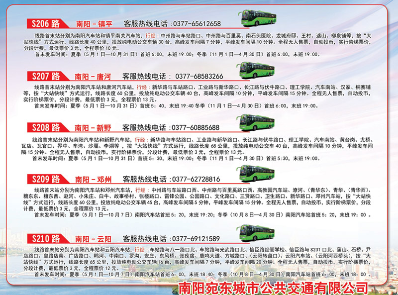 ??????? 南陽宛東城市公共交通有限公司(以下簡稱“宛東公交公司”)成立于2017年11月9日,地址:南陽市臥龍區(qū)車站路189號。2017年12月26日納入國家《城市公共交通管理部門與城市公交企業(yè)名錄》,正式進入城市公共交通序列。公司現(xiàn)有員工609人,純電動新能源公交車輛318臺。