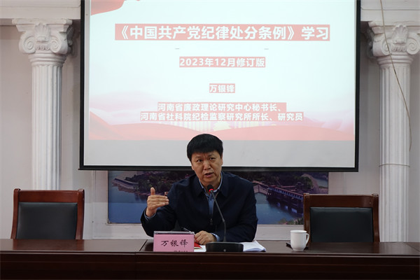 河南省廉政理論研究中心秘書長、河南省社會科學院紀檢監(jiān)察研究所所長萬銀鋒作專題輔導