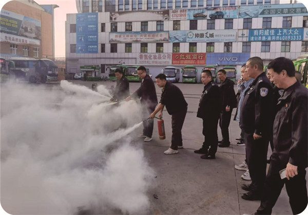 南陽汽車站 11月6日下午,舉行消防安全應(yīng)急演練,對日常消防訓(xùn)練成果進(jìn)行考核。演練過程中,員工們?nèi)硇耐度?,有效提升了滅火、疏散、自救以及協(xié)調(diào)指揮能力,為生產(chǎn)經(jīng)營平穩(wěn)、有序、健康推進(jìn)筑牢堅實基礎(chǔ)。