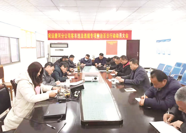 按照集團(tuán)公司、客運(yùn)公司關(guān)于開(kāi)展客車(chē)違法違規(guī)專(zhuān)項(xiàng)整治百日行動(dòng)安排部署,二分公司、五分公司和新野、唐河、社旗、南召分公司等客運(yùn)單位迅速行動(dòng),及時(shí)召開(kāi)全體人員動(dòng)員會(huì),傳達(dá)集團(tuán)公司、客運(yùn)公司客車(chē)違法違規(guī)專(zhuān)項(xiàng)整治百日行動(dòng)動(dòng)員大會(huì)精神,安排布置專(zhuān)項(xiàng)整治活動(dòng)相關(guān)工作。
