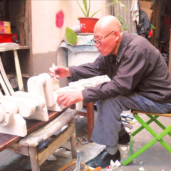 制作中,他把制成的毛坯放到球場(chǎng)上曬,忙不過來就讓老伴幫忙。模型做出后,需要用手打磨,手指磨破了,貼上“創(chuàng)可貼”連續(xù)干,兩腿不方便干脆取下假肢,在院內(nèi)支上一塊木板當(dāng)工作臺(tái)。白天沒完成的活兒,晚上在院內(nèi)扯上電燈干通宵。黃福林的兩條腿磨得發(fā)紫,干脆坐在地上干活,干起來忘記了疼痛。