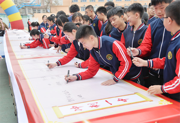 九年級老師、學(xué)生代表先后發(fā)言,與會師生進(jìn)行了宣誓。伴隨著《我相信》的歌聲,同學(xué)們在橫幅上簽字,表達(dá)“燃青春、磨利劍,戰(zhàn)中考、贏未來”的決心。最后,九年級各班方隊(duì)在班主任的帶領(lǐng)下,整齊、昂揚(yáng)地依次跨過“成功門”。(李新歌)