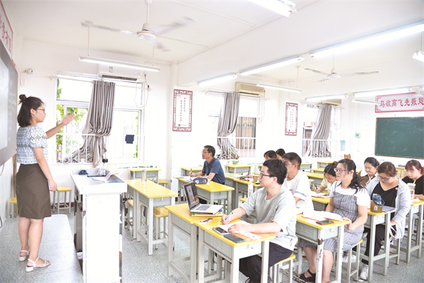 三天的課堂實(shí)操分語(yǔ)文、數(shù)學(xué)、英語(yǔ)、理化生、政史地五個(gè)組緊張有序展開(kāi)。在各學(xué)科組長(zhǎng)帶領(lǐng)下,所有老教師先上示范課,接著新教師上過(guò)關(guān)課,每位教師講完課后集體評(píng)課,當(dāng)堂打分。大家精心備課,傾情演繹;既虛心傾聽(tīng)意見(jiàn),又誠(chéng)懇點(diǎn)評(píng)他人;提升明顯,收獲滿滿。